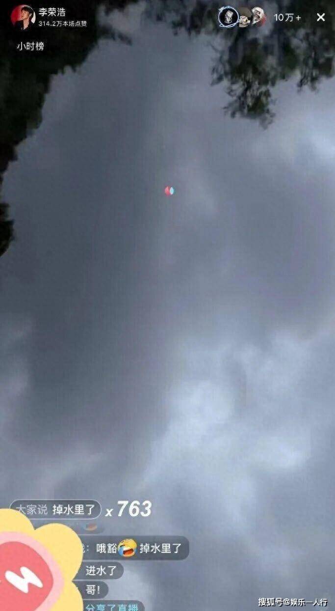 直播画面从仰拍天空的角度突然黑屏,观众能清楚听到“噗通”一声。1077.3万人累计观看了这场直播,其中超过10万人是在线实时目睹了手机落水的全过程。