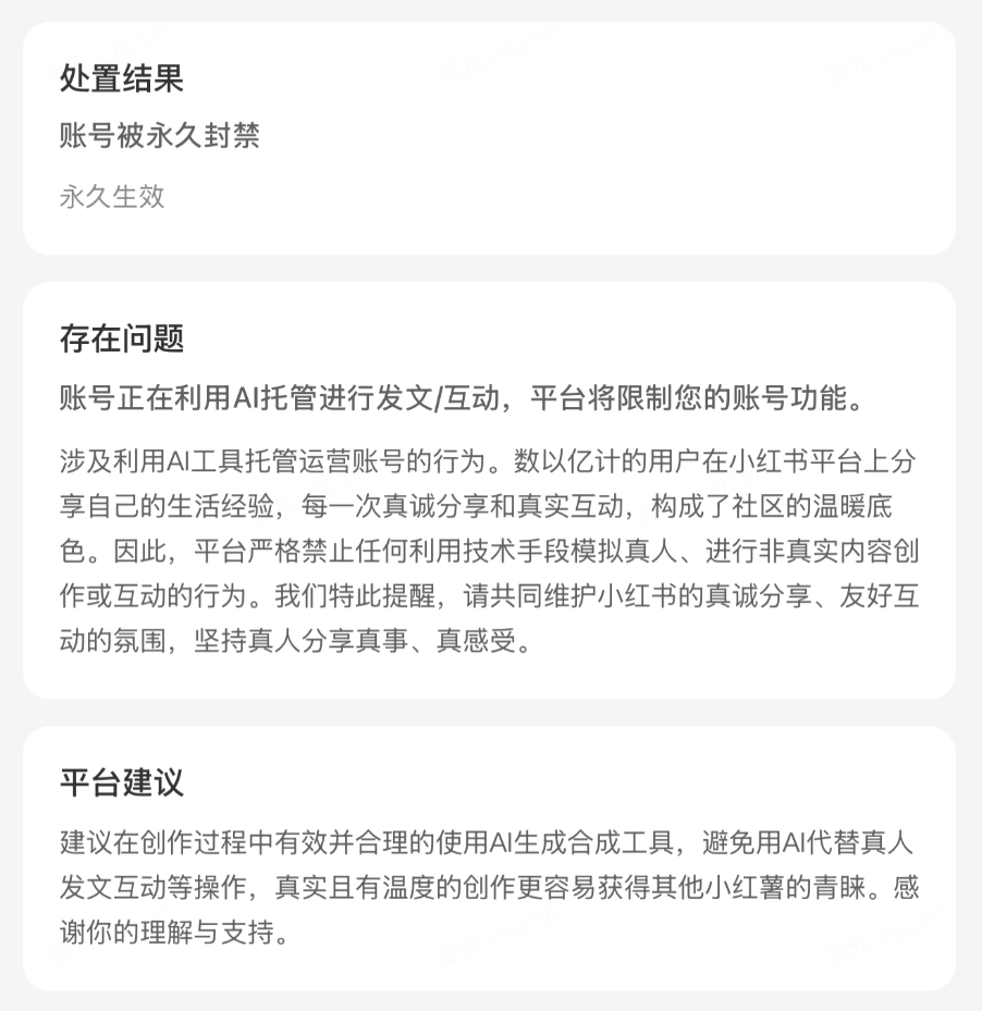 平台对AI托管账号的处置发信